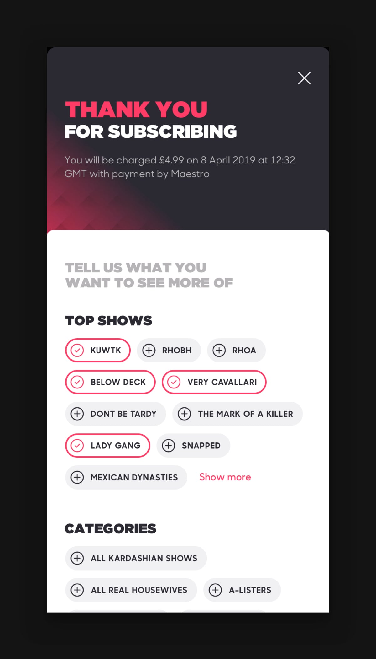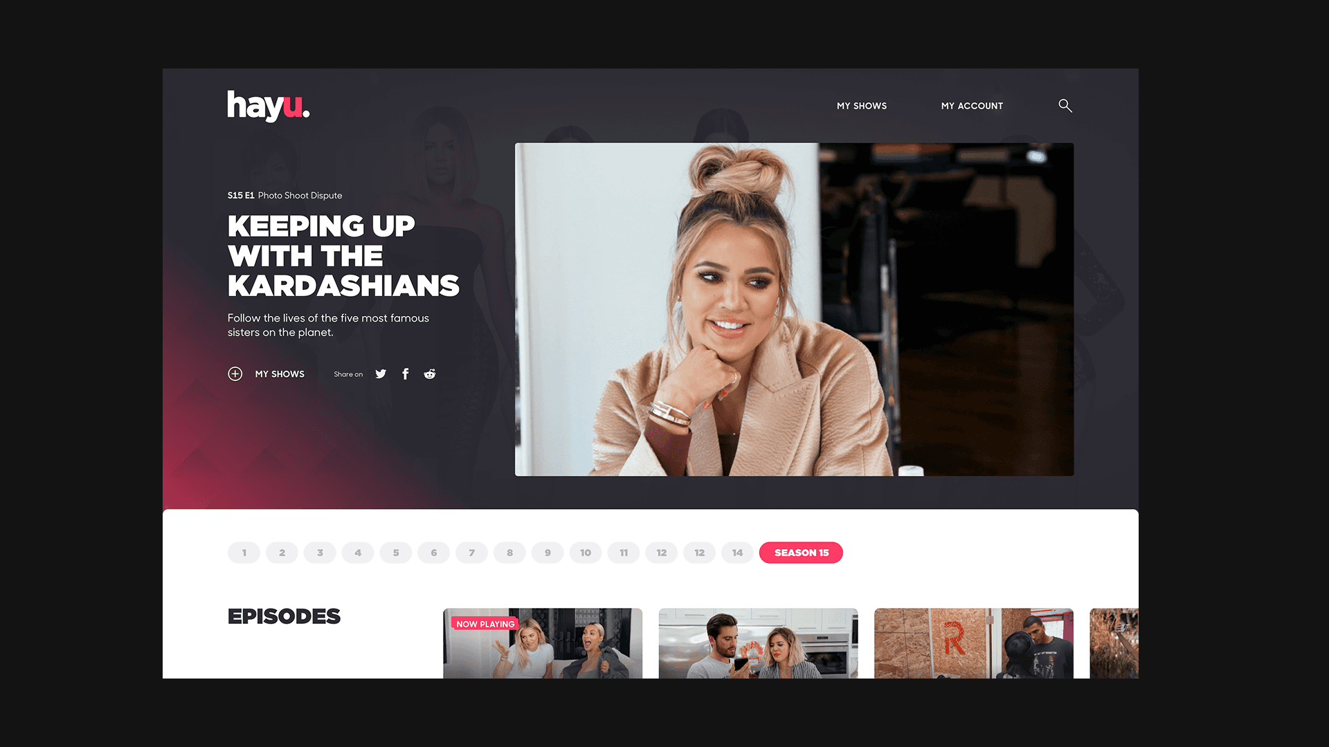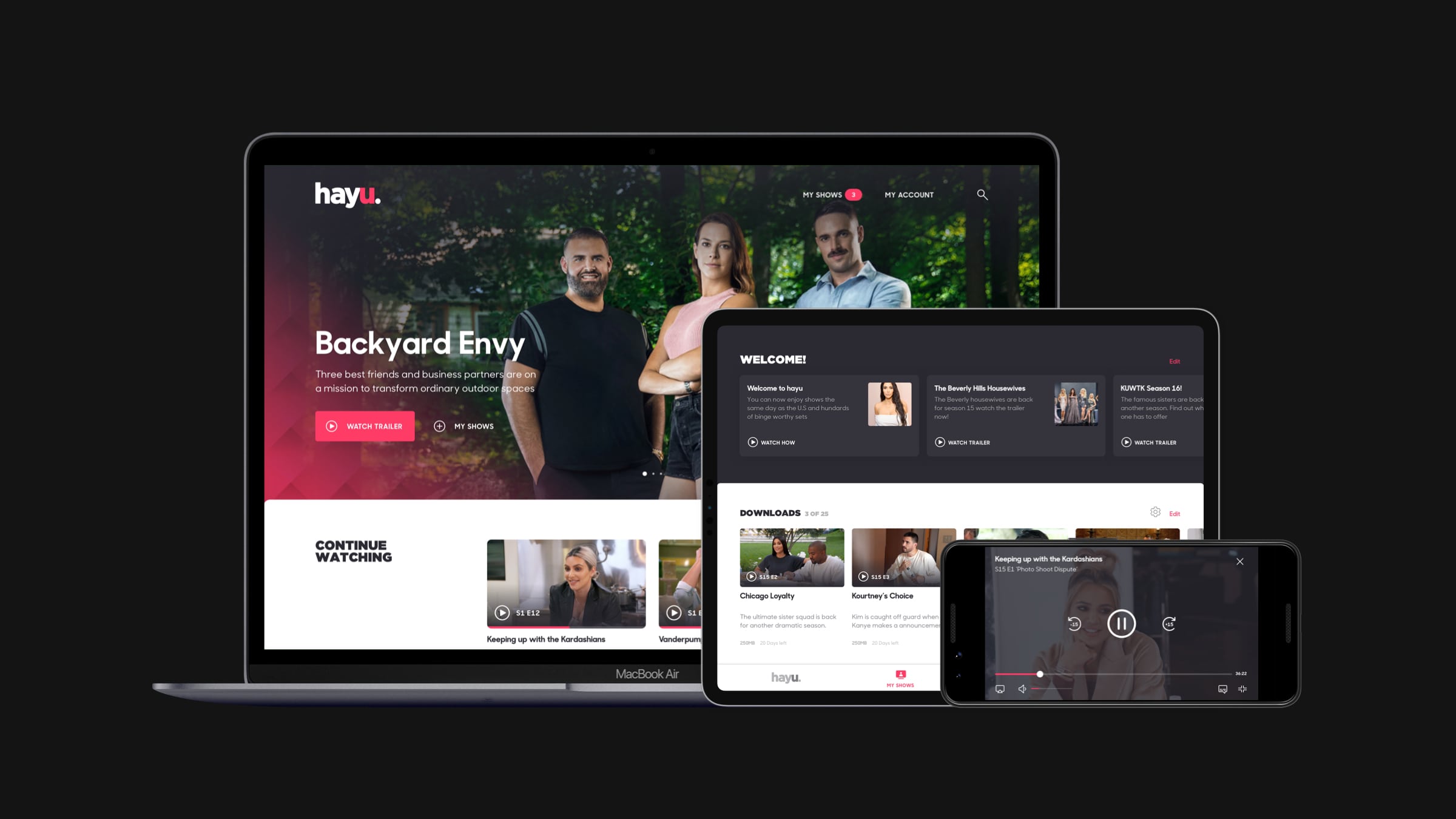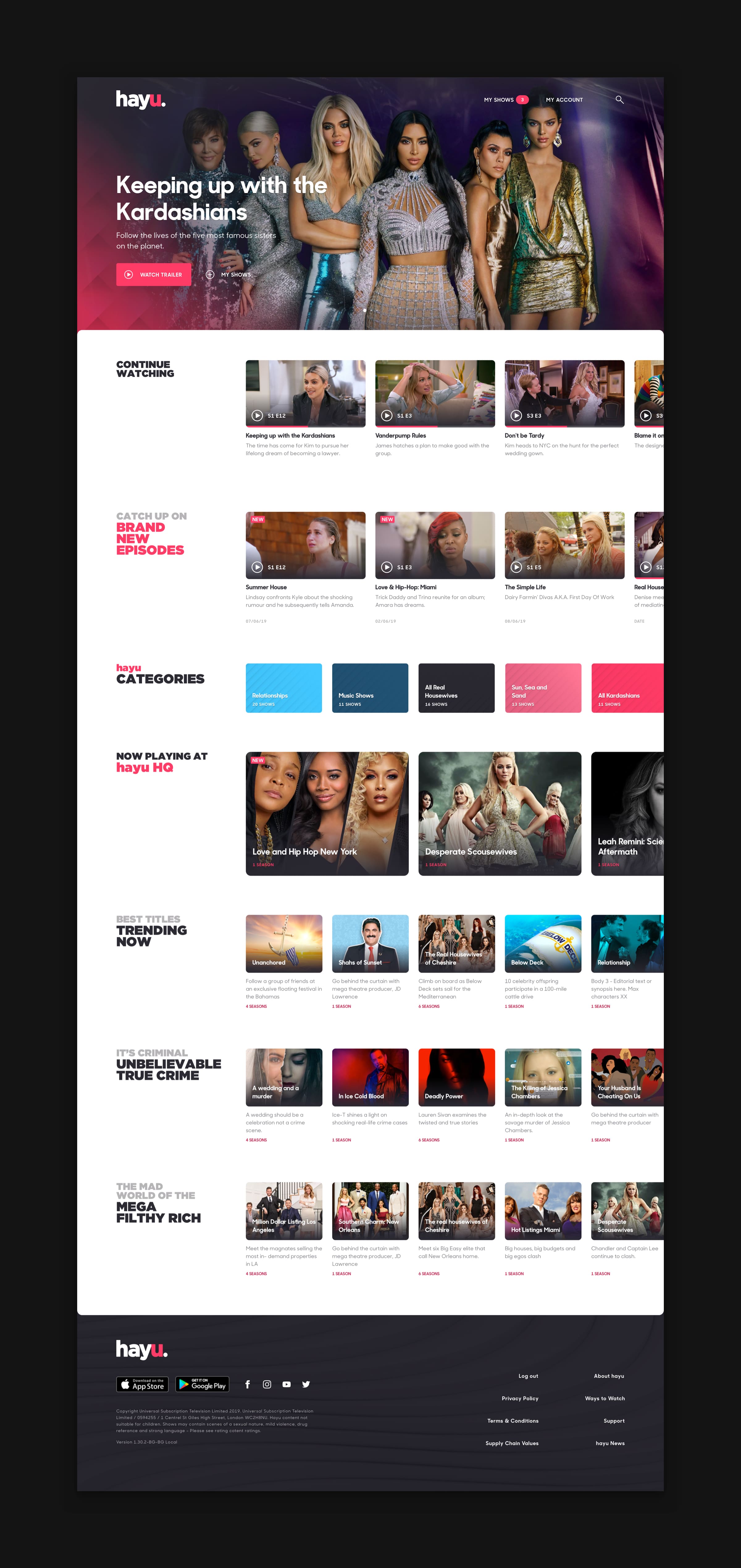 An experience that delivers on its key promise to be the go-to for great reality shows. Audiences can seamlessly pick up where they left off, jump from show to show, easily discover and explore the hayu catalogue with a bit of sassy editorial along the way.